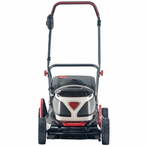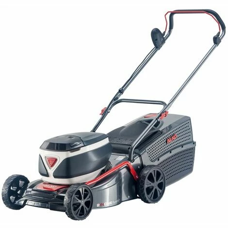 Compartiment de batterie pour jusqu’à deux batteries Largeur de coupe de 42 cm Pour les pelouses jusqu’à 800 m2 avec décharge équilibrée pour Max. À long terme Interrupteur de fer plus agréable Boîtier en tôle robuste Toit de batterie pour jusqu’à deux batteries